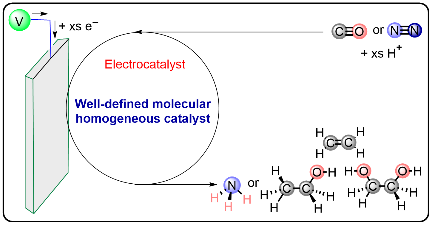 The present research focuses on the design and synthesis of catalytically active molecular electron-transfer mediators for sustainable electrochemical nitrogen reduction to ammonia and carbon monoxide reduction to alcohols and higher-chain hydrocarbons. This project involves comprehensive mechanistic investigations of the reactivity of these organometallic complexes, addressing key challenges in the electrocatalytic and sustainable reduction of small molecules. The overarching goal is to develop and establish catalytic strategies for the production of alternative energy carriers, including methanol, ethylene, and other liquid fuels,to help mitigate the growing global energy crisis and advance carbon-neutral technologies.