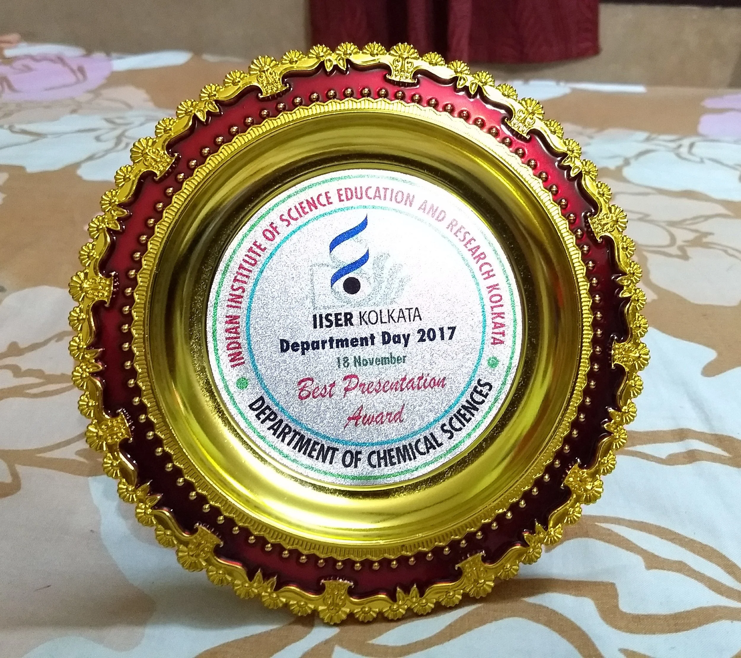2017 IISER Kolkata, India; Best Presentation Award